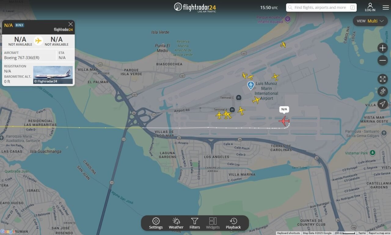 En un cambio de ruta inesperado, el Boeing 767-336 (ER) fue desviado hacia San Juan, Puerto Rico.