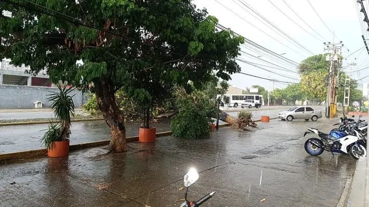 ​Los habitantes de la avenida Independencia de Coro, específicamente frente al estadio municipal José David Ugarte, han compartido nuevas imágenes de un árbol que colapsó tras el reciente aguacero acompañado de vientos de vendaval.