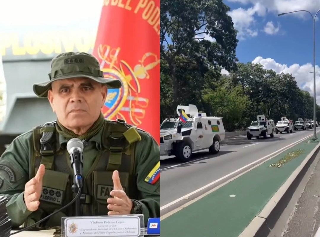Caracas. – El ministro de la Defensa, Vladimir Padrino López, lideró este sábado una caravana militar en la capital como parte del despliegue denominado “Los cuarteles van al pueblo”.